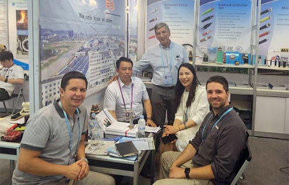 上上電纜此次展出了包括低壓電纜、控制電纜、低壓交聯(lián)電力電纜、中壓電力電纜、橡套軟電纜、布電線等多種產(chǎn)品,這些產(chǎn)品廣泛應(yīng)用于電力傳輸、工業(yè)制造、新能源等多個領(lǐng)域,自主研發(fā)的熱塑性聚丙烯絕緣中壓電力電纜一經(jīng)亮相便吸引了眾多觀展觀眾駐足。其中來自智利、澳大利亞、加拿大、馬來西亞、印尼、巴西等國的客商在和現(xiàn)場負責(zé)人的交談中表達了對上上的認可,他們認為:上上電纜的產(chǎn)品外觀精致、性能穩(wěn)定、品質(zhì)卓越,讓人眼前一亮!不少都表達了強烈的購買欲望。