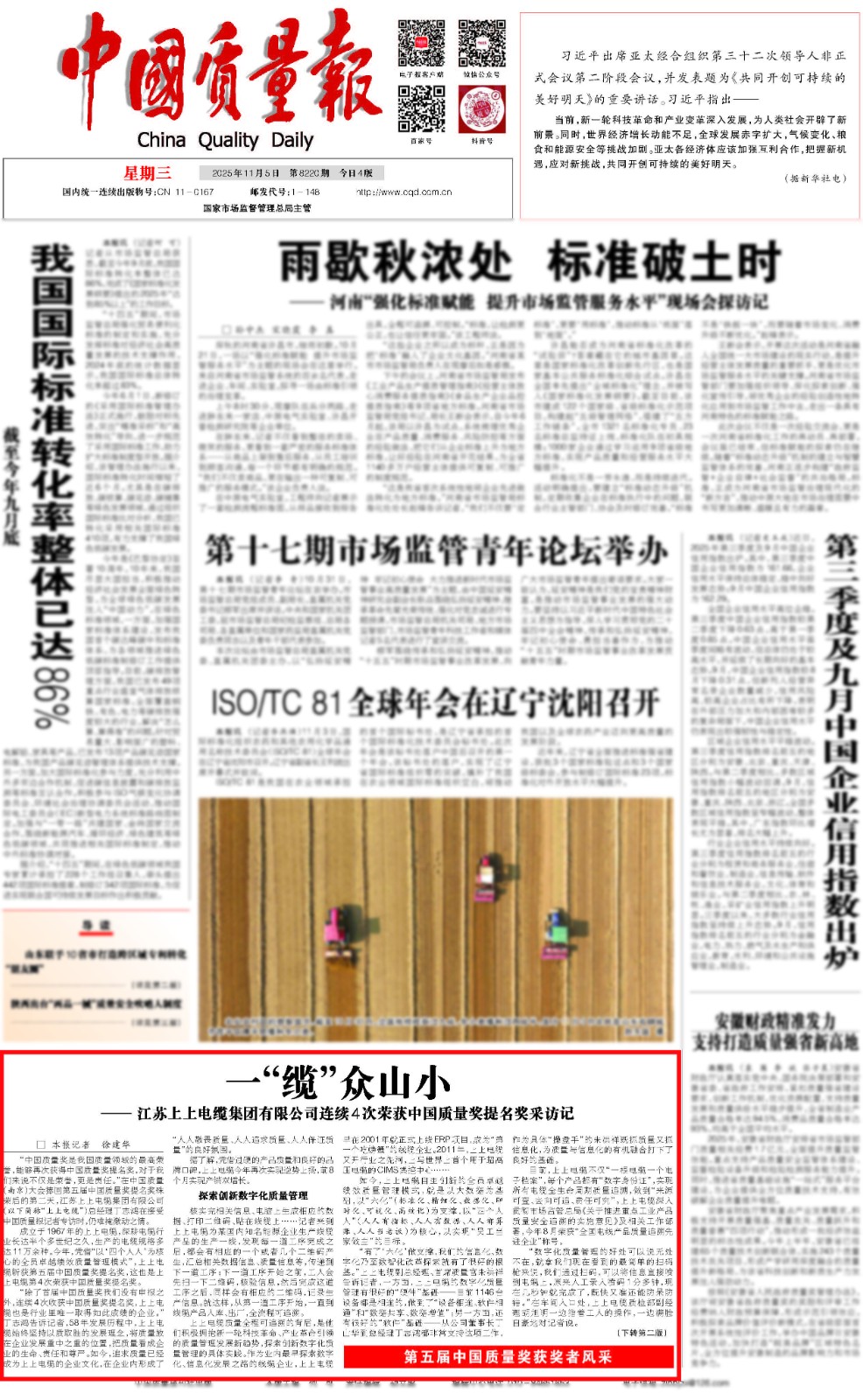 類似的案例還有很多,這背后是上上積極通過質(zhì)量創(chuàng)新因地制宜發(fā)展和培育新質(zhì)生產(chǎn)力的創(chuàng)新之道。8月29日,上上電纜牽頭,聯(lián)合中國核電工程有限公司、生態(tài)環(huán)境部核與輻射安全中心等核電監(jiān)管機構(gòu)、核電纜生產(chǎn)企業(yè)、核電設(shè)計院、核電運行單位共同制定的《核電站用1E級電纜 通用要求》國家標(biāo)準(zhǔn)正式發(fā)布,將于2026年3月1日起實施。