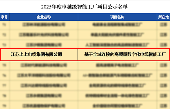 2025年,上上電纜憑借在技術(shù)創(chuàng)新、智能制造及產(chǎn)業(yè)升級方面的突出成就,成功獲評“全國工業(yè)和信息化系統(tǒng)先進集體”,這是繼企業(yè)先后獲評“綠色工廠”“綠色供應(yīng)鏈管理企業(yè)”后,在工業(yè)和信息化領(lǐng)域獲得的又一國家級榮譽。