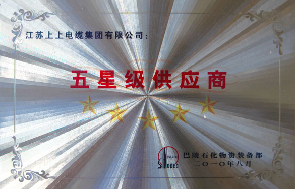 日前,憑著優(yōu)質(zhì)的產(chǎn)品質(zhì)量、及時交貨能力及良好的售后服務(wù),江蘇上上電纜集團再次被巴陵石化物資裝備部授予“優(yōu)秀供應(yīng)商”及“五星級供應(yīng)商”稱號。
