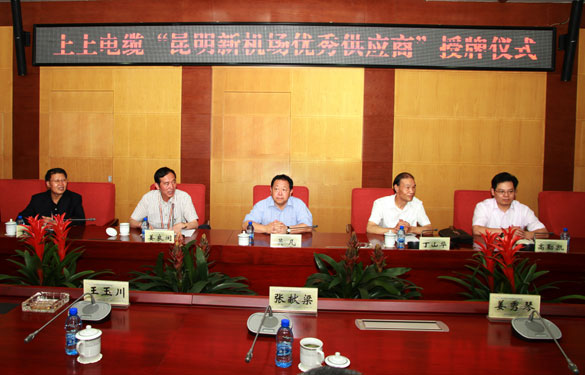 7月10日,昆明新機(jī)場建設(shè)指揮部召開優(yōu)秀供應(yīng)商授牌大會(huì),昆明新機(jī)場建設(shè)指揮部指揮長吳凡、副指揮長姜良閩、上上集團(tuán)董事長、總經(jīng)理丁山華、副總經(jīng)理高勤凱等領(lǐng)導(dǎo)出席會(huì)議。會(huì)上,昆明新機(jī)場建設(shè)指揮部授予江蘇上上電纜集團(tuán)優(yōu)秀供應(yīng)商獎(jiǎng)牌,對(duì)上上集團(tuán)在昆明新機(jī)場建設(shè)中所作出的貢獻(xiàn)表示感謝。