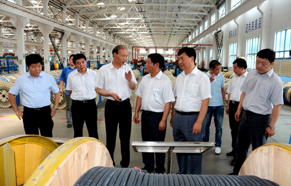 7月20日,金壇市委書記范壽柏、市長丁榮余率金壇市黨政代表團(tuán)來江蘇上上電纜集團(tuán)參觀考察。溧陽市委書記盛建良、市長蘇江華等溧陽市四套班子領(lǐng)導(dǎo)陪同考察,集團(tuán)董事長、總經(jīng)理丁山華、常務(wù)副總經(jīng)理丁志鴻陪同兩地領(lǐng)導(dǎo)參觀了西廠區(qū)特種電纜生產(chǎn)基地。