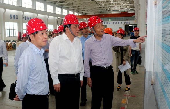 2016年6月12日,常州市委常委、常務(wù)副市長韓九云一行在溧陽市委書記蔣鋒、副市長蔡金龍等領(lǐng)導(dǎo)陪同下來江蘇上上電纜集團調(diào)研,集團董事長丁山華陪同韓市長一行參觀了西廠區(qū)特種電纜生產(chǎn)基地。