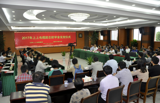 2017年10月17日,江蘇上上電纜集團50周年慶典隆重舉行。慶典儀式上,上上向溧陽市教育局捐資1000萬元,設(shè)立“上上勵志助學金”,資助地方貧困學生讀書成才。與會嘉賓們紛紛表示,捐資助學、回報社會的愛心行動,讓上上此次慶典辦得更加有意義。