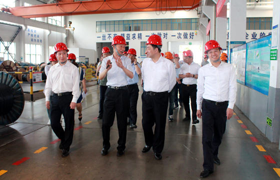 6月1日,常州市委書記汪泉一行來上上電纜西廠區(qū)特種電纜生產(chǎn)基地參觀調(diào)研,溧陽市委書記蔣鋒、市長徐華勤、市委常委、中關(guān)村產(chǎn)業(yè)園黨工委副書記莊松年、集團(tuán)董事長丁山華、總經(jīng)理丁志鴻等陪同調(diào)研。
